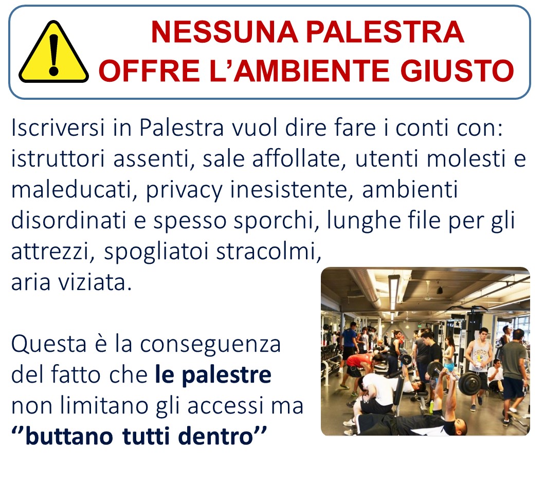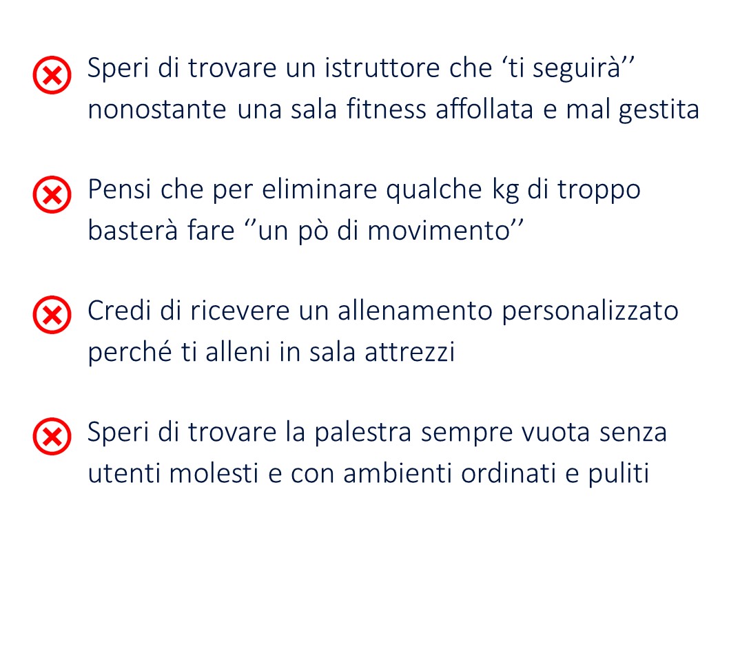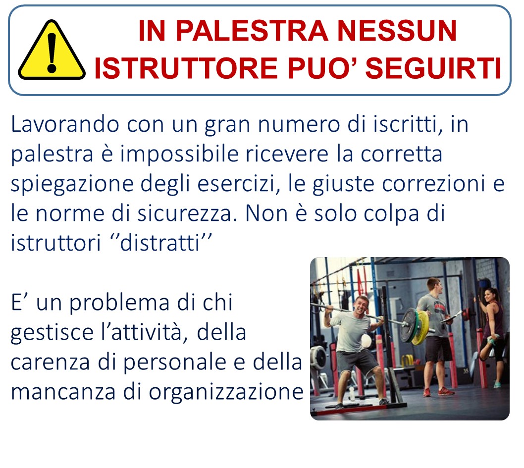 Il fatto che le palestre offrano servizi di scarsa qualità non ti deve obbligare a sceglierne una qualunque (tanto sono tutte uguali) ne devi per forza cercare un personal trainer per avere assistenza
